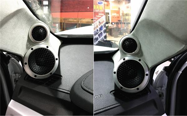 前聲場(chǎng)安裝歌劇世家VS365三分頻,低頻密度感好,中頻清晰,高頻響亮,整個(gè)前聲場(chǎng)取得了的非常好的平衡,真實(shí)耐聽(tīng),且中音和高音倒模安裝于A柱,使得聲場(chǎng)擴(kuò)大,遼闊又嘹亮。