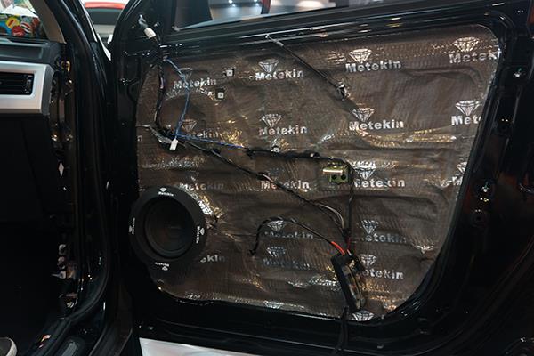 為了給汽車音響喇叭打造一個良好的工作環(huán)境,改裝技師采用美特靜隔音材料對車門做了雙層的隔音處理,這就像是在門板的周圍制作了一個箱體一般,一方面能夠減少噪聲對其的干擾,另外一方面還能夠有效的增加音樂的立體感。
