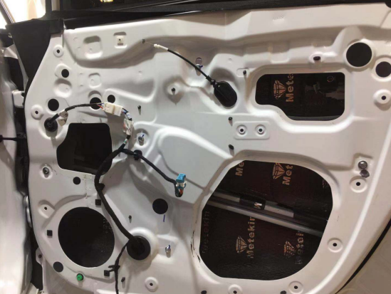 拆開(kāi)比亞迪宋的車(chē)門(mén),門(mén)板內(nèi)部幾乎沒(méi)有任何的隔音處理,在行駛的過(guò)程當(dāng)中極容易產(chǎn)生門(mén)板共振,使得風(fēng)噪等噪聲直接傳入到汽車(chē)車(chē)廂內(nèi),影響車(chē)內(nèi)環(huán)境。因此,至上音樂(lè)的改裝技師使用隔音材料對(duì)汽車(chē)的車(chē)門(mén)做了雙層的隔音處理,使得汽車(chē)的隔音效果提升了不少。
