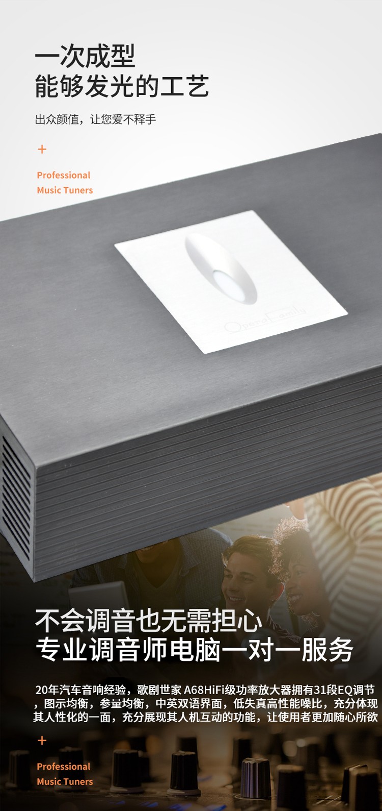 品牌: Opera family/歌劇世家意圖系列 型號: A-68 輸出功率: 其他 輸出阻抗: 4歐姆 失真度: 0.01% 信噪比: 95dBA 汽車音響功放類別: A/B類 汽車音響功放用途: 推套裝喇叭 4進6出,31段EQ,延時、藍牙、4x85W、RMS、A/B類