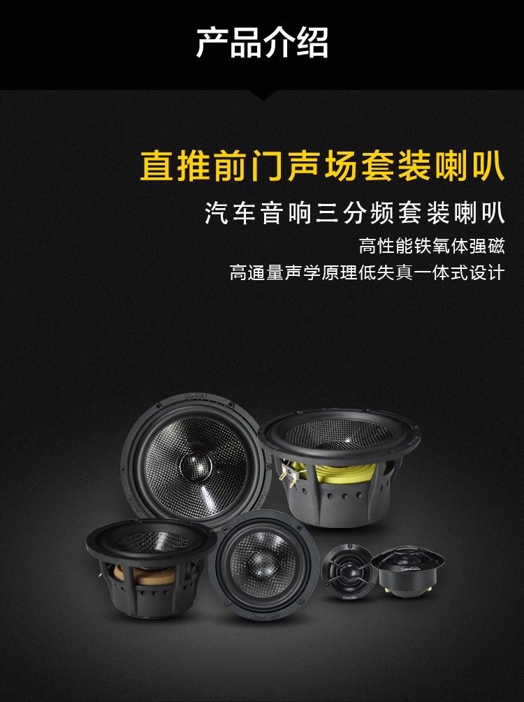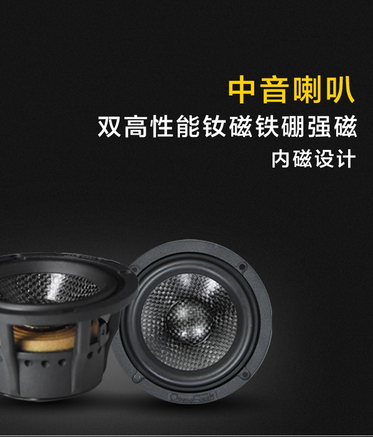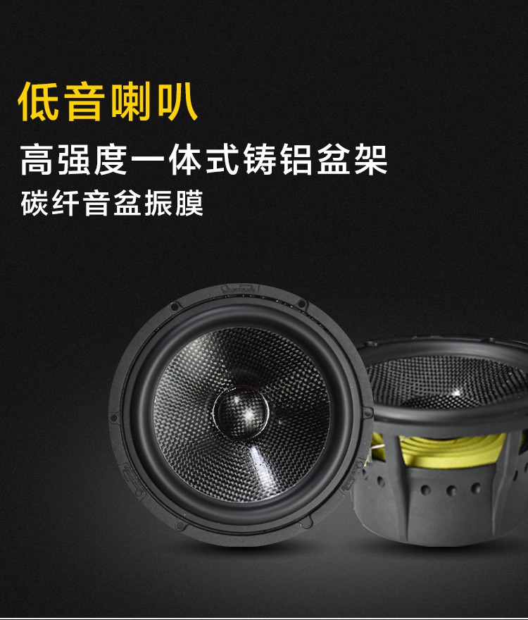 高性能鐵氧體強(qiáng)磁,高通量聲學(xué)原理低失真一體式設(shè)計;高強(qiáng)度一體式鑄鋁盆架,碳纖音盆振膜;雙高性能釹鐵硼強(qiáng)磁,內(nèi)磁設(shè)計;全鋁合金,CCAW,德國蠶絲音膜;純銅鍍金接線端子。 額定功率:80W 最大功率:160W 系統(tǒng)阻抗:4Ω 靈敏度:90dB 頻響范圍:44Hz-20kHz