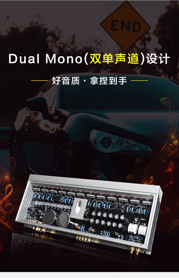 雙單聲道式設(shè)計;定制純銅鍍金RCA座、電源端子、喇叭端子;德國蒙多福油浸電容;LED透視式外觀設(shè)計;開關(guān)式輸入增益調(diào)節(jié);外置高效風(fēng)冷散熱系統(tǒng)。 輸入功率:2x300W@4Ω/1x800W@4Ω THD+N:<0.01% 信噪比:>100dB 頻響范圍:10Hz-30KHz±1dB 輸入靈敏性:0.5V-5V 輸入阻抗:47kΩ 待機電流:<1.2A